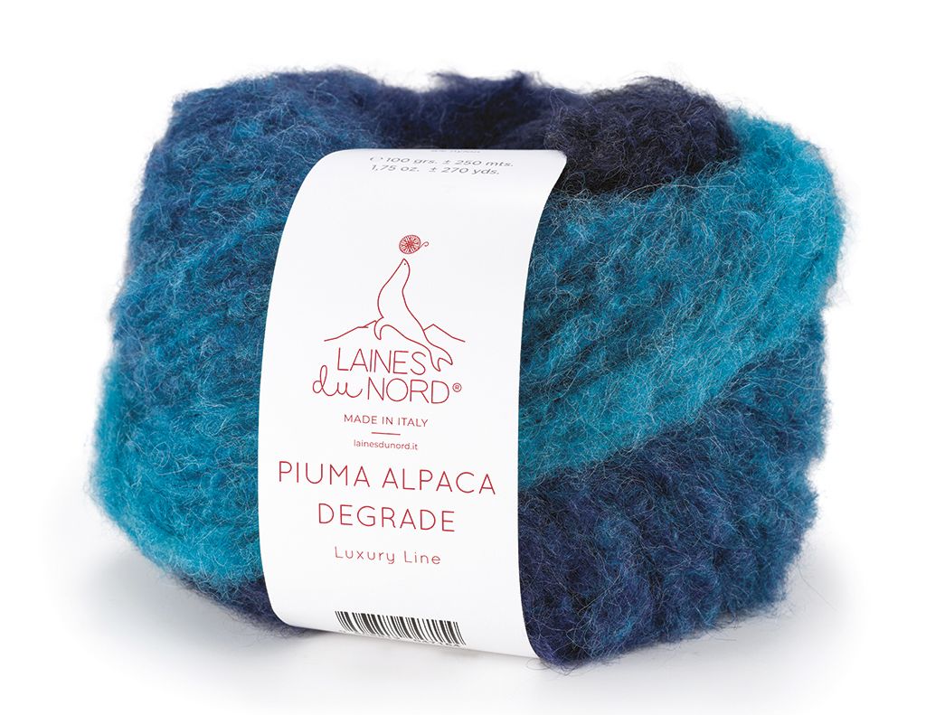 Un mix raffinato di alpaca e lana con delicate tonalità dégradé che si fondono in transizioni naturali e armoniose. Piuma Alpaca Dégradé è perfetto per lavorazioni eleganti e ricche di movimento, dona profondità cromatica e leggerezza a ogni capo, esaltando ogni punto con un tocco sofisticato.