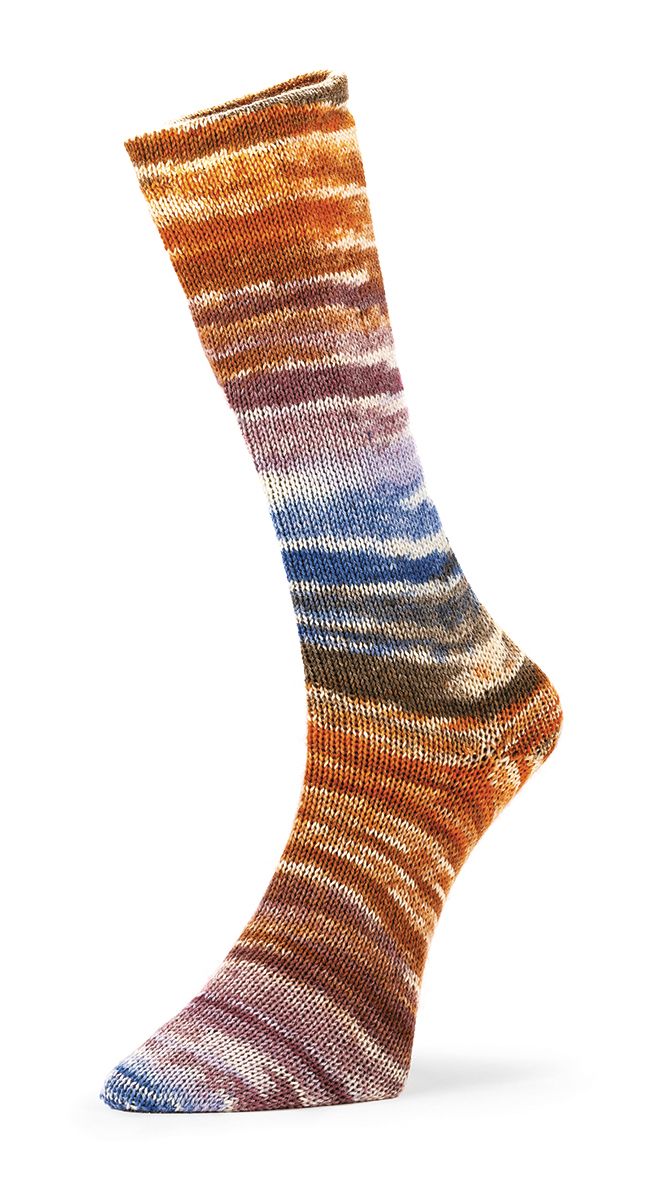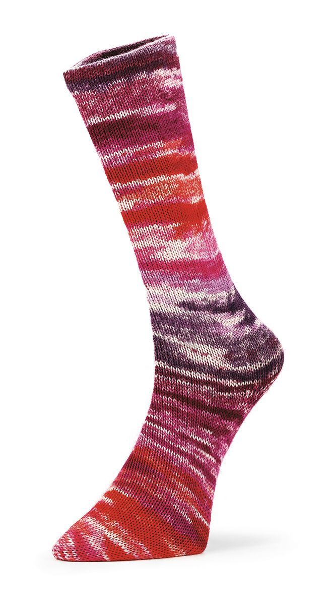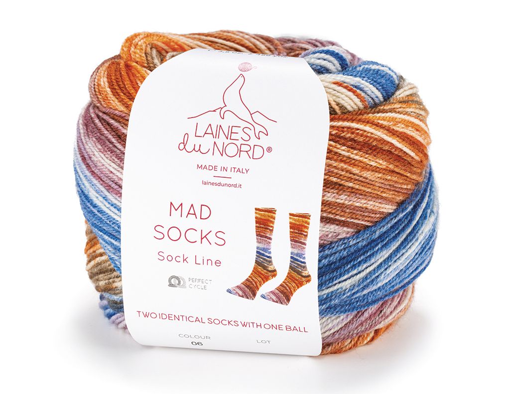 Le combinazioni cromatiche vivaci si sviluppano in modo armonioso, in Mad Socks, creando effetti dinamici e sorprendenti. La lana mulesing free cloro free, unita al nylon, assicura comfort, resistenza e una resa uniforme ciclo dopo ciclo. È il filato perfetto per chi ama osare con il colore.