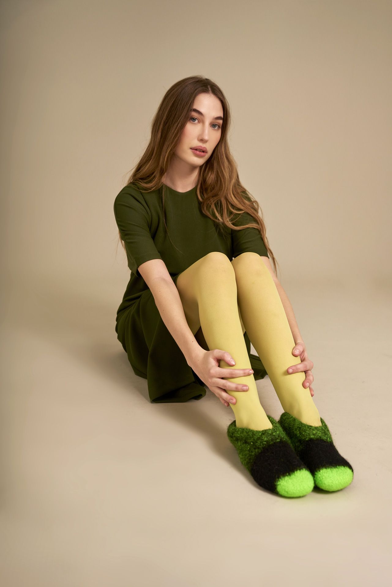 Prima dell'infeltrimento le pantofole risulteranno più grandi del 30%. Per infeltrire le pantofole avvolgerle in un asciugamanto e lavarle in lavatrice a “40° cotone” (non eseguire lavaggi delicati o usare detersivi per capi delicati).