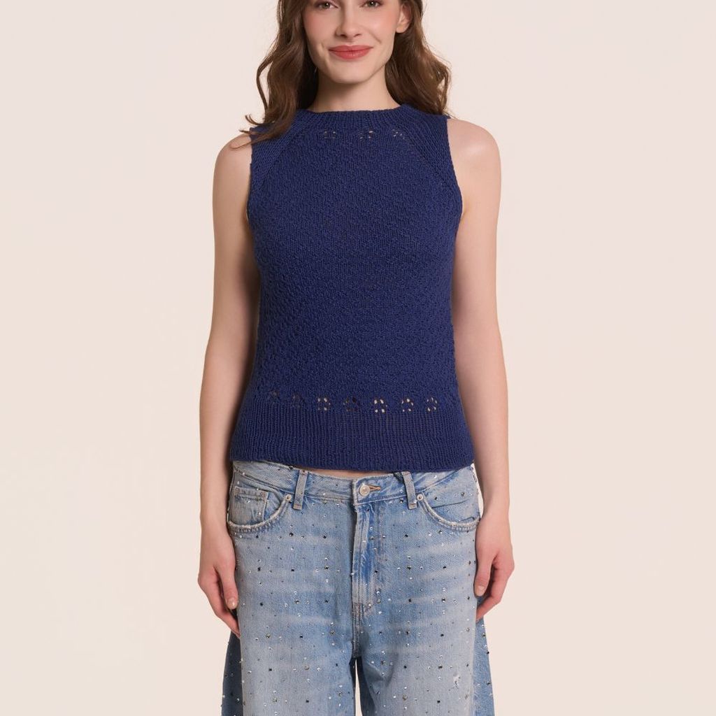 Altro = ago da lana con la punta arrotondata, marcapunti, forbici, metro a nastro.