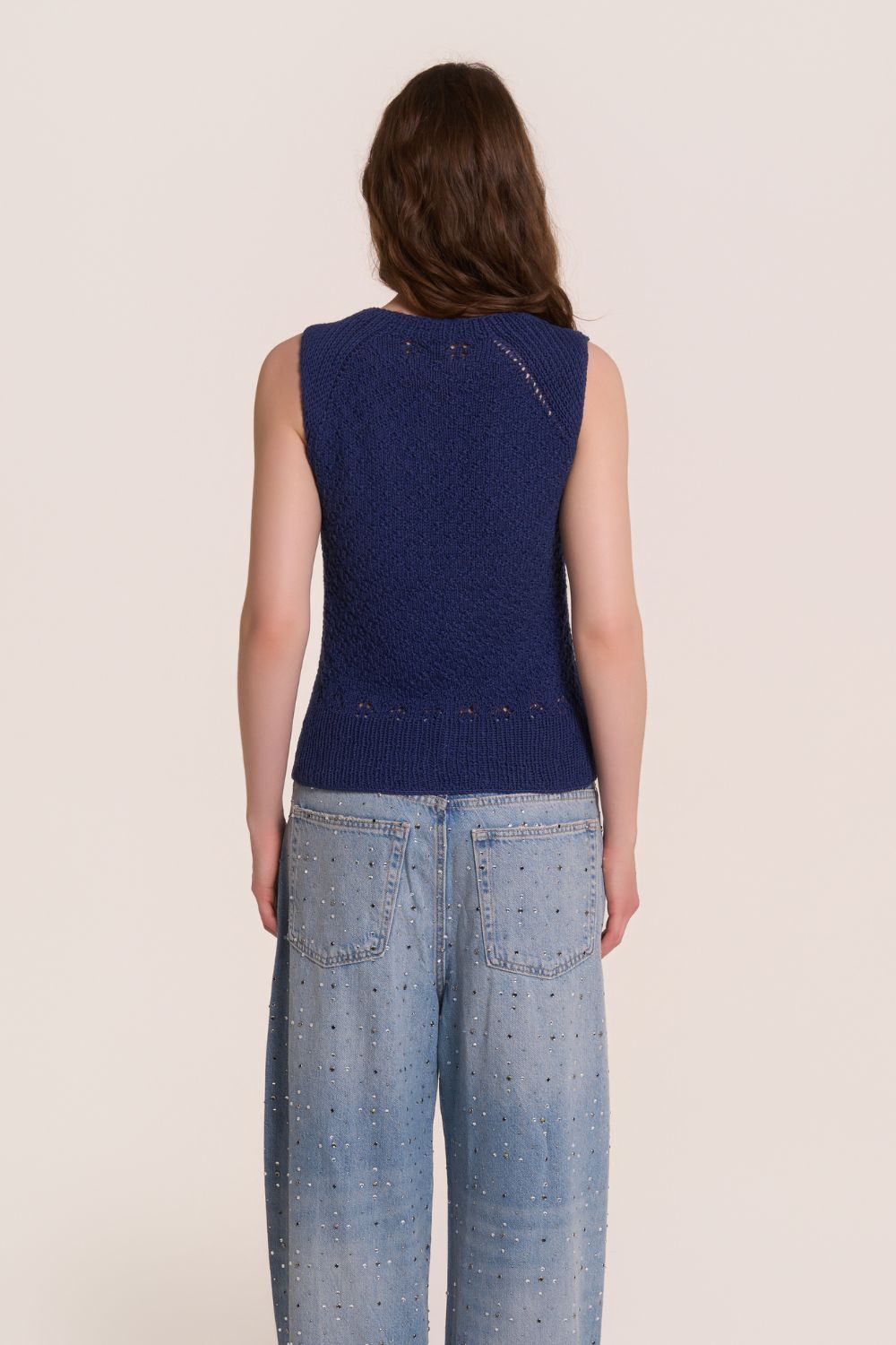 Il capo è lavorato con la tecnica top down (dall'alto verso il basso) senza cuciture. La parte superiore del corpo è lavorata in piano, in ferri di andata e ritorno, quindi unita in tondo per realizzare la parte inferiore del corpo.