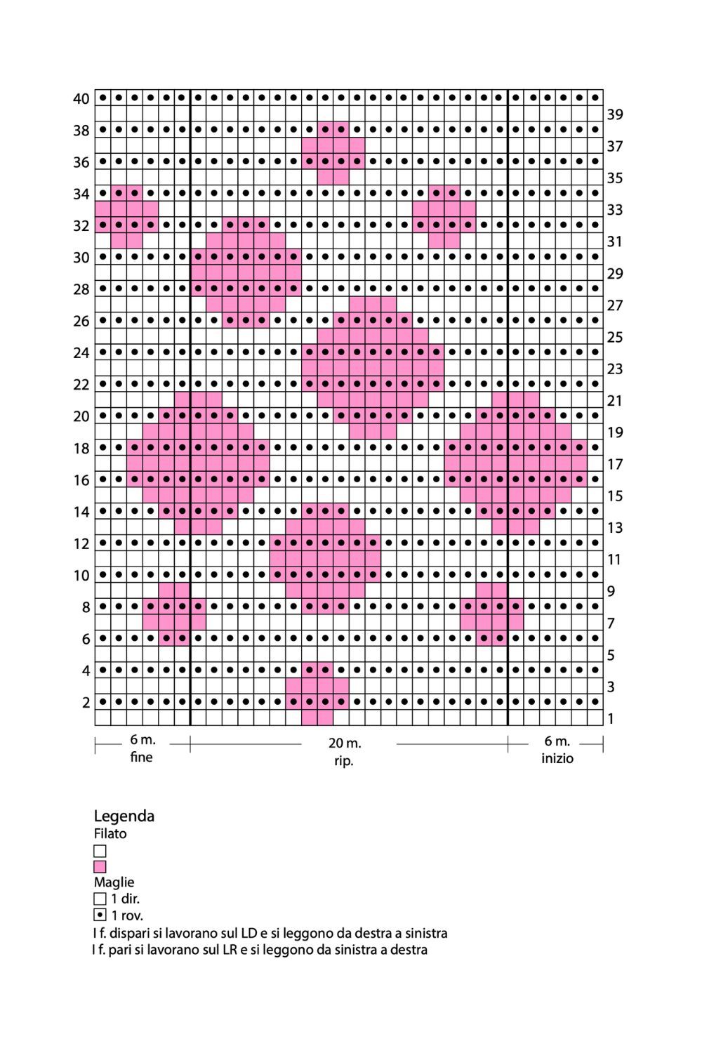 3° f: lav a dir fino all'ultima m, 2 dir, girare il lavoro e passare la 1a m. Rip ** come nel 1° f.